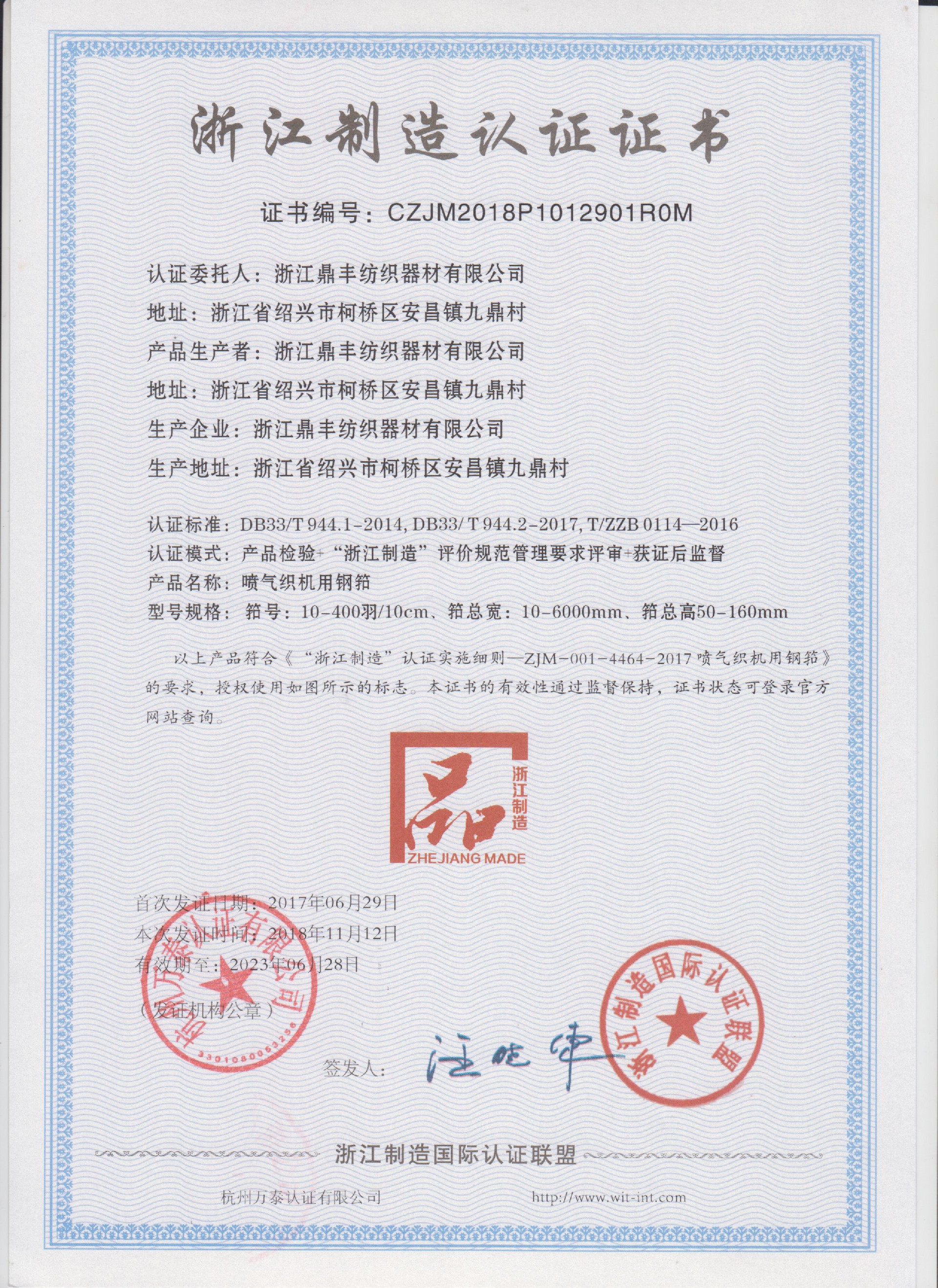 浙江鼎豐紡織器材有限公司始建于1986年,是一家專業(yè)生產各類無梭織機用鋼筘:噴氣筘、噴水筘、劍桿筘、其他類型鋼筘;鋁合金綜框、鋼片綜、停經片、經軸、織軸、卷布輥等產品及配件的民營企業(yè)。